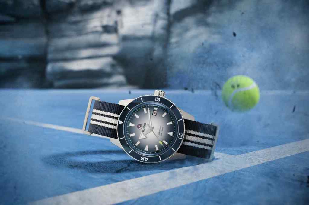 RADO Captain Cook está diseñado para captar todas las miradas. Convirtiéndose en un deslumbrante complemento en la muñeca de cualquier caballero que lo porte, debido a que la temporada veraniega de tenis está a punto de comenzar. El reloj cuenta con una caja y una corona a rosca de acero inoxidable pulido. La caja incorpora un bisel giratorio de acero inoxidable pulido con una incrustación de cerámica pulida de alta tecnología de color azul que lleva grabados números y marcas recubiertos de Super-LumiNova® de color blanco mate. Asimismo, tiene un cristal de zafiro en forma de caja con revestimiento antirreflejo en ambas caras.