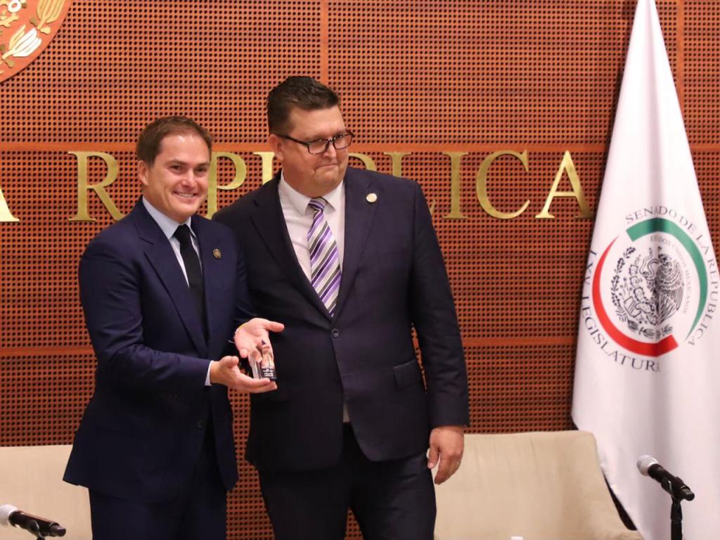 El diputado federal Javier López Casarín recibió el premio Defensor de la Óptica 2024, que otorga la organización Advancing Optics and Photonics Worldwide, en una ceremonia realizada en el Senado de la República.