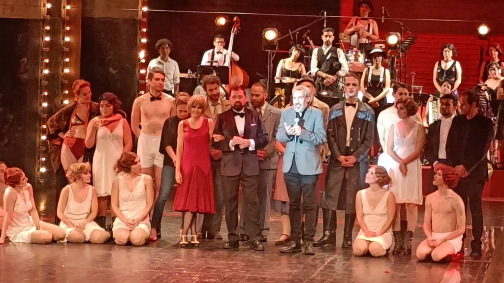 Cabaret, una obra muy bien montada, con actores de primera línea, bailarines muy coordinados, solamente en cuestión de tiempo para mi punto de vista es muy larga y la gente se llega a desesperar, en algunos tramos de la obra.