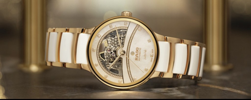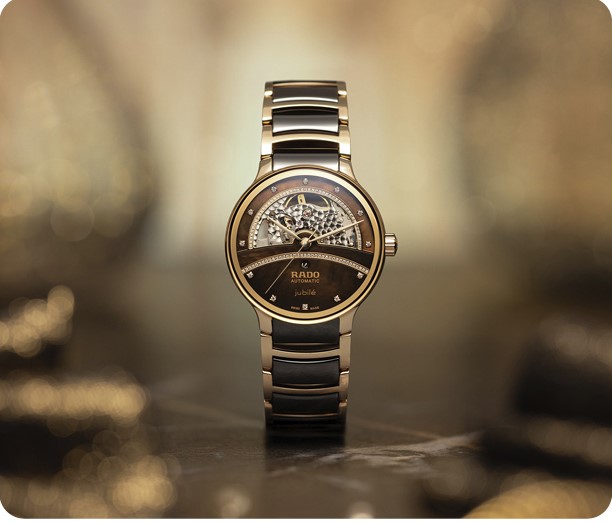 El tono de fondo de la esfera hace juego con el de los eslabones centrales del brazalete, de cerámica de alta tecnología de Rado, mientras que los elementos de la caja y del brazalete exterior se persiguen en armonía, calentando siempre los corazones de los enamorados en reconfortantes tonos de acero inoxidable acabado en PVD color oro rosa.
