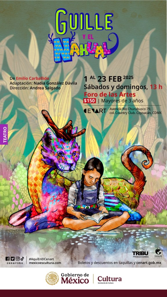 La obra Guille y el Nahual, se presenta en El CENART, bajo la dirección de Andrea Salgado y adaptación de Nadia González Dávila, los sábados y domingos de febrero a la 1:00 pm.