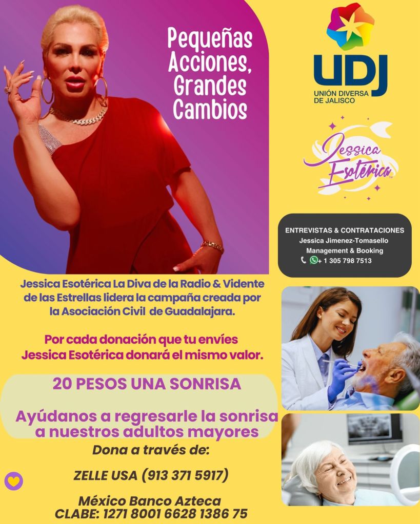 Jessica Esotérica (La Diva de la Radio y La Vidente de las Estrellas liderea la campaña creada por la Asociación Civil de Guadalajara, “Regresando la Sonrisa a Nuestros Adultos Mayores”.