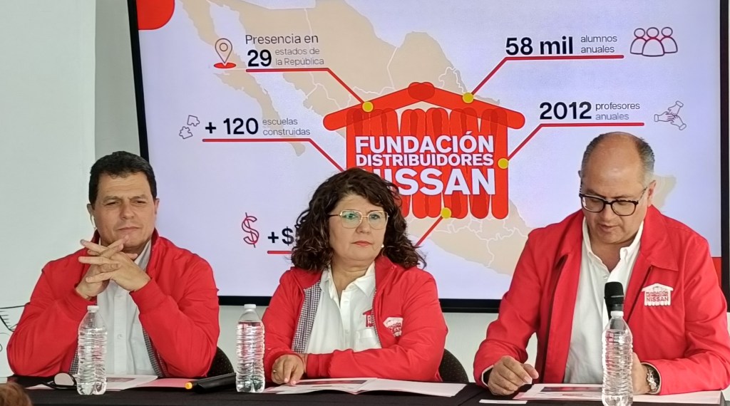 En conferencia de prensa, Kurt Aschentrupp, director de Fundación Distribuidores Nissan y Grupo Andanac, Guadalupe Martínez, consejera de Fundación Distribuidores Nissan y líder empresarial con gran impacto en Guerrero y Miguel Zapata, empresario, filántropo y consejero de Fundación Distribuidores Nissan. Se reunieron para dar los pormenores y logros alcanzados en 2025 por parte de la Fundación Nissan en México.