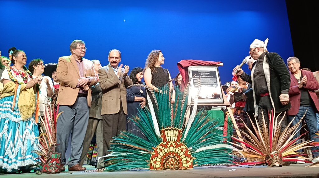 Para celebrar las 100 Representaciones y develar la placa alusiva de esta puesta en escena, se dieron cita en el Teatro de la Ciudad, diferentes personalidades del mundo de espectáculo, (Carlos Benavides, José Luis Cordero “Pocholo” y José Luis Duval, entre otros), representantes del INBAL, CANACO, Secretaria de Cultura, Comunidad Triqui, Comunidad Zapoteca, Empresarios de Arte y Cultura, Embajadores, familiares del gran Emperador Moctezuma, quienes develaron con gran orgullo la placa conmemorativa.
