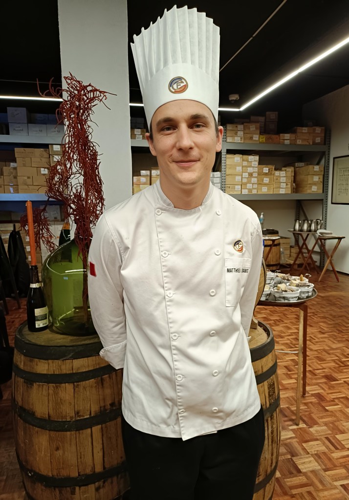 El vino (Cami Salié Jurancon Sec) este vino es seco, con mayor acides para degustar en boca, y se puede acompañar con una sopa de ajo, acompañado de hongos pambazo, con una costra confitada de ajo para que los sabores estallen en el paladar al combinar con el vino. Porthos es uno de los mosqueteros que se identifica con este vino, debido a que él venía de una familia noble y era una persona sumamente elegante.