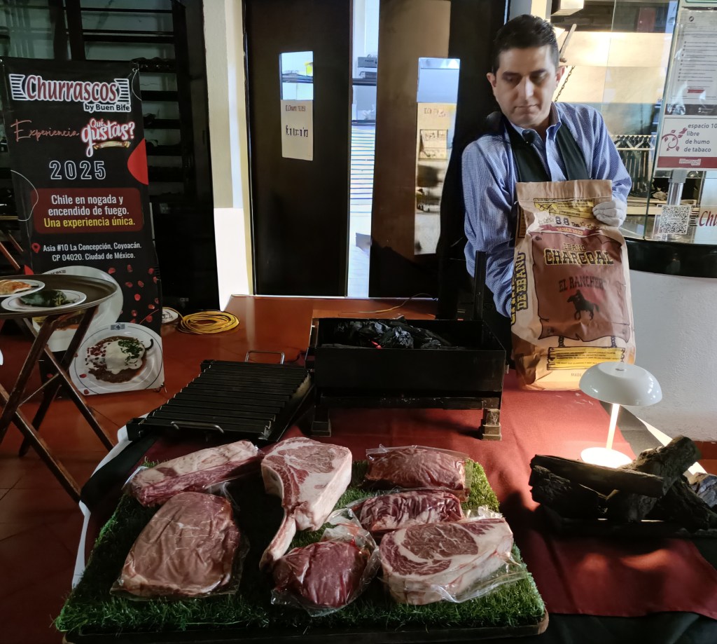 Aprovechando la asistencia de la prensa, el Churrasco by Buen Bife, hizo el encendido del fuego, un ritual que se realiza diariamente con el carbón de Ébano y Quebracho para elaborar los cortes (Churrasco, Bife de Chorizo, Rib Eye, Arrachera y Vacío, entre otros), estos cortes de carne se encuentran durante todos los días del año.