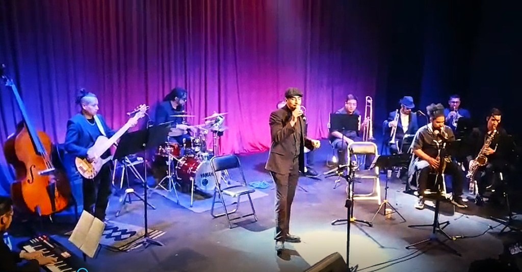 La Blue Catz Big Band mostró su depurado oficio logrado a través de los años con talento, precisión y pasión, en donde el vocalista: Israel Marín, brilló con su excelente voz y su extraordinaria calidad interpretativa, siempre acompañado por una espléndida estructura instrumental y sonora compuesta por saxofones, trompetas clarinetes y contrabajos.