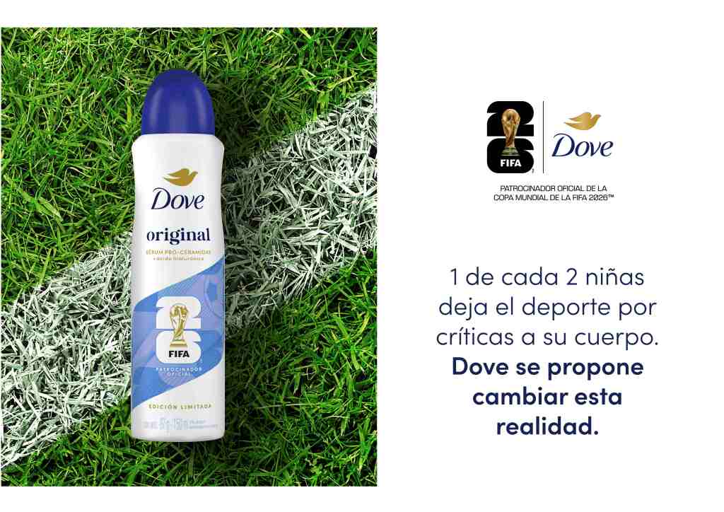 - Dove, patrocinador oficial de la Copa Mundial de la FIFA 2026™, presenta su edición limitada Dove x FIFA World Cup 2026™, como parte de su plataforma global “El Juego es Nuestro”, que busca cuestionar quién se queda y quién es empujada a salir del deporte